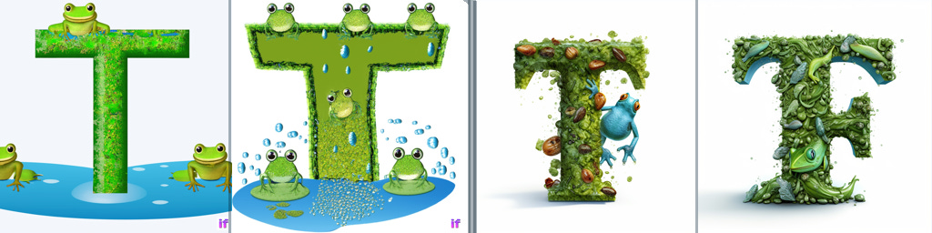 Haiku—like all poetry?—are about the latent. In the creation of the illustrations — visuals, sound, video — I wanted to convey one universe of atmosphere and emotion that I found in these poems. Poems are multivalent, and the space of personal interpretation is large, but I hope this presentation resonates even for the centuries old texts in translation. On each poem page, you’ll find a slow building of the text executed via tween animations, a generated video from Phenaki enhanced with open source nature sounds, and links to two key words. Each key word is illustrated by generated letters and generated music, which I’ll discuss below. For the video content, I tried to generate a “two scene” moment for each, a setting and an event with transition. I used tricks like specifying “documentary style” or even “black and white” for realistic nature scenes; color scenes especially with animals veered into fantastical or cartoony as you can see in the Google I/O pre-show performance by Dan Deacon. I still had some weird out-takes, like where the model doesn’t entirely understand cause and effect for Bashō’s famous frog splash, or we get a frog photo bomber despite the background frog: Phenaki can manage transitions using multiple prompts, like “pan over a pond at sunset,” “zoom in on a willow tree blowing in the wind at night, stars falling.” Or “a thunderstorm with lightning” followed by “poppies blowing in a field in the wind.” The open source models don’t seem to do this yet, and people have to construct their videos as separate gif-like animations strung together. The videos I used weren’t edited apart from upscaling and adding some noise filters. Generation for design requires a lot of curation, of course, and the famous morning glory-covered well haiku by Buddhist nun Chiyo-ni was tough to get. A lack of footage of wells, maybe? For some, my videos had to become more metaphoric, like for Amy Lowell’s beautiful poem below. Attempts at actual swords rendered cartoon ninja arms!