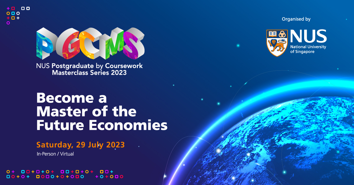 | Join the National University of Singapore Postgraduate by Coursework Masterclass Series 2023 (NUS PGCMS 2023), as we deep dive into the key growth sectors to watch in the years to come: the Digital, Green, Care, and Industry 4.0 future economies.