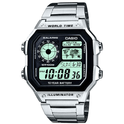 | World Time | | | | | This classic CASIO watch has a touch of nostalgia. Comes with World Time, a handy LED light, a stopwatch accurate to 1/100th of a second, a countdown timer, and lets you check the time in 4 different time zones easily. | | | | | | |