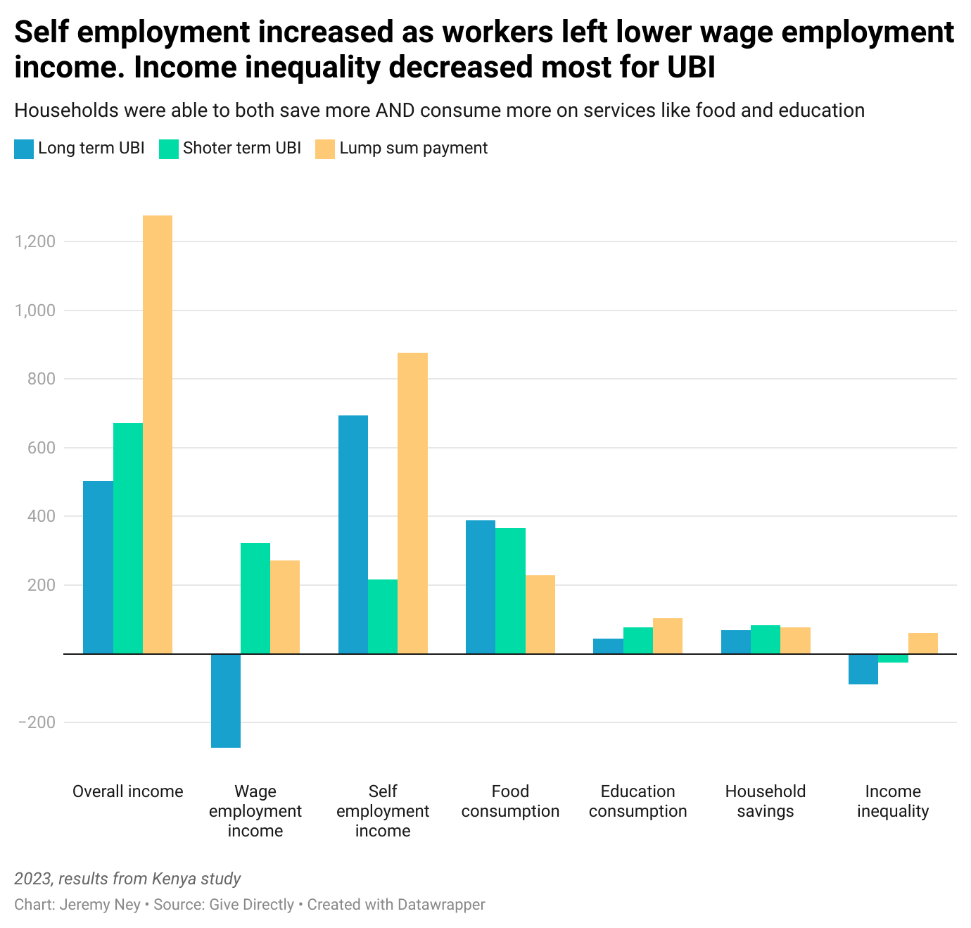 The most common way that people in low and high income countries receive cash assistance — including most UBI pilots in the United States — is through short-term monthly payments, which this study found to be the least impactful design. The results should make governments reconsider how they deliver cash aid based on what outcomes they are hoping to achieve.