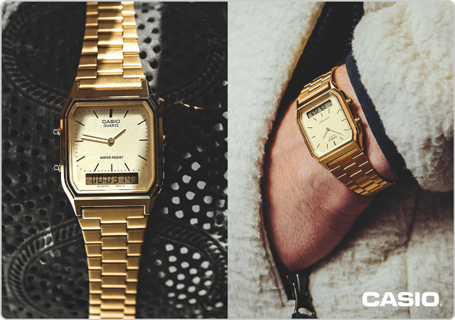 | | Back In Stock | Back by popular demand, the AQ-230 series seamlessly blends digital and analogue displays, offering many of the features you'd expect from a digital timepiece in a timeless design.