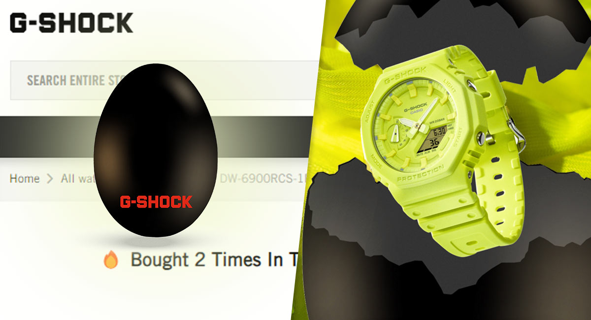 | | | G-SHOCK COMPETITION - EGG-SPLORE MISSION | | Explore our website to uncover hidden G-SHOCK eggs. Find an egg and crack it open for a chance to WIN our new volt yellow GA-2100-9A9ER. Happy hunting and good luck! |  |  |