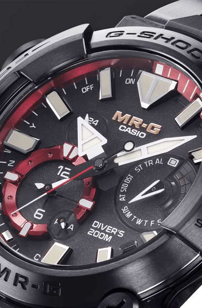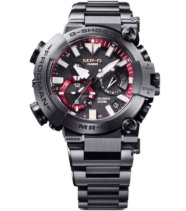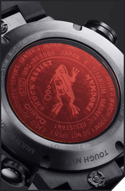 | Strength. Craftsmanship. Prestige. | | Introducing the newest addition to the MR-G FROGMAN series: the titanium-armored MRG-BF1000B, boasting ISO professional divers certified 200-meter water resistance. Meticulously handcrafted with an asymmetric design for unrestricted underwater movement, it embodies the pinnacle of Japanese watchmaking and G-SHOCK's legendary durability. | | | |