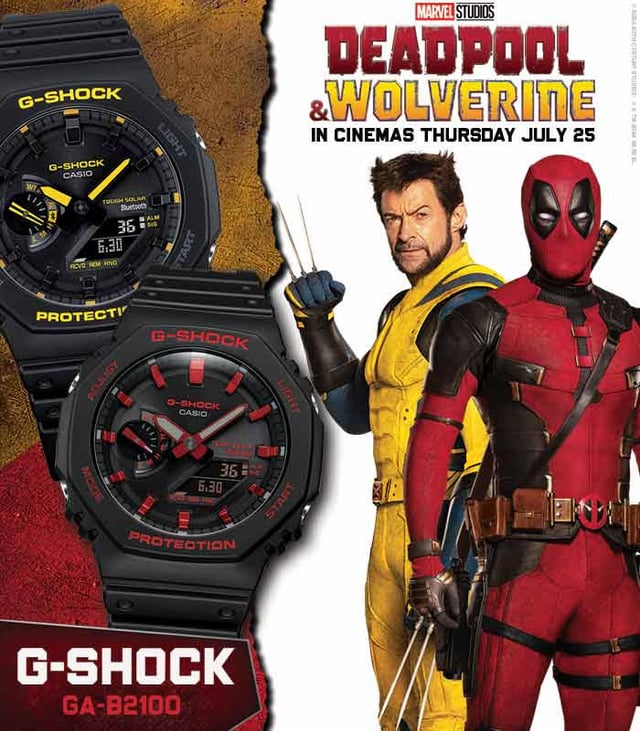 G-SHOCK TEAMS UP WITH MARVEL STUDIOS' DEADPOOL & WOLVERINE | Packed with tech, these watches are equipped with Tough Solar power and Bluetooth wireless connectivity. Powered by any light source, artificial or natural. Built in phone finder, alarms, stopwatch & world time as standard. Issued with limited edition packaging exclusive to G-SHOCK.CO.UK whilst stocks last.