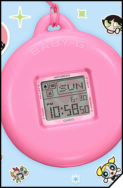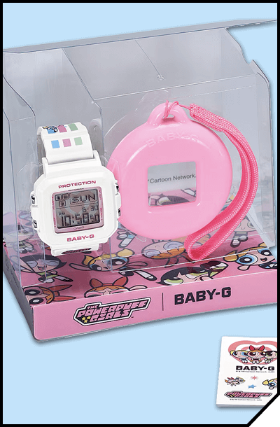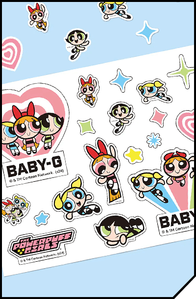 | | BABY-G x POWER PUFF GIRLS | Blossom, Bubbles, and Buttercup join BABY-G to celebrate their 25th anniversary and BABY–G's 30th anniversary. Three cute and tough superheroes paired with one tough and cute watch. | | | | | | | |