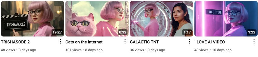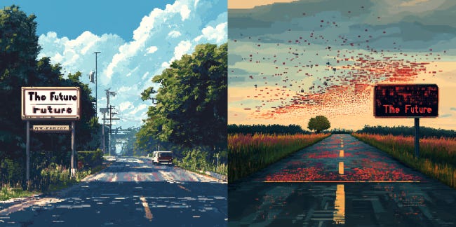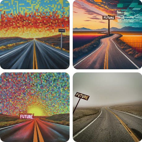 I took some pics of them, myself — here from Fontanalba, accessible only via the guide, from a complex panel of unknown meaning, that had links connecting scenes…. (I took 3D pano pics of it but haven’t constructed the video yet.) The guide’s theory was that the lower left corner had a “tree of life” type symbol in the pen that also held a horned figure. Lumley’s theory is that this was a bull-worshipping people, and the guide suggested that engraving in the mountains was a religious act. It would require enormous time and dedication to come to this space, under the elements, and engrave anything point by point. Perhaps the process itself was a meditative religious act? (Hints of the Ted Chiang article linked below…) In any case, if you want more details about the trip itself, from navigation to the mountain drive and hike bits (not to mention the Google directions), drop me a note or a comment and I’ll write up My Crazy Summer Vacation. Onto the news! AI Art"LayerPano3D: Layered 3D Panorama for Hyper-Immersive Scene Generation" - this was obviously going to be my favorite of the past 2 weeks, if you’ve been following me. The code isn’t up yet but is promised soon (maybe by mid-month newsletter?). It offers artistic style environment output as well. Somewhat relatedly, some dude just posted a tutorial on using Blender + image gen to make 3d environments, clever but a lot of work. And while on 3d tooling, you can use splats inside After Effects, per Bilawal Sidhu on X. (There’s a lot of research momentum on intelligent 3d splat generation from only a few images as input right now. Feel free to ping me if you want links.) Also see CarlosBannon’s AI x Architecture experiments on X if you want- realtime generation of buildings from Comfyui using Processing generated shapes (h/t DreamingTulpa). Image Gen ToolsIdeogram 2.0 — the new release is very good, especially at text in image. AND they offer an API. Here are some low res examples of a hardish prompt I gave it — “A road that turns into pixelated art in the distance. A sign beside it says "The Future".” The top one is what I was after, but the bottom one is interestingly deviant, it suggests we’re already living half pixelated. And the distance is to the side? It’s maybe not wrong. Anyway, the service is popular and they’re lowering free perks to deal with demand. In contrast, Midjourney, not free — Midjourney’s web UI is finally out of beta and open to all users. It also has a proto web editor tool that improves on the command line and Discord junk, but isn’t a full-fledged editor (like, it allows cropping with the UI but then errors and says cropping isn’t implemented). They also say they are getting into hardware—via X comments—but this seems like a really risky move given the many terrible AI hardware objects out there. Interestingly, they are now doing a ratings effort on prompt adherence; I found it very difficult. Labeling data yourself is the best way to understand how hard something is. The free Gemini App from Google will do a bunch more things now, including pics. I got these shown below — it didn’t like the “the” article on “The Future” but honestly it wasn’t terrible, although I don’t know if I think fog is a pixelated future. (I’m just stepping away from the Pixel phone AI articles here; I wrote about this phenomenon in more detail here.) In other Gemini news, if you have a Gemini Advanced subscription, you can now make Gems, which are Google’s version of Claude Artifacts or “GPTs,” I guess. Evidently they can read your docs and YouTube videos, which is pretty useful, frankly. (X demo link, sorry.) Meanwhile, "Hobbyists discover how to insert custom fonts into AI-generated images (in Ars Technica)". Well, that’s not a good title, it’s a Flux model trained on the Cyberpunk 2077 logo using a Lora. You can now do this very fast and cheaply on Fal. You just need your set of images. Yep, the data collection part is always the hard part. Gradio Spaces for Background Removal - a ysharma Collection - useful. Video UpdatesLuma Labs updated their Dream Machine animation model to 1.5. It’s also less easy to use for free now, due to demand/cost. I’ve been using Deforum’s Studio app with their music beat (and now “event”) syncing, and it’s really interesting. The papercut style is fab. You still need to do a lot of editing in a video tool, though. (Not to mention the wait times.) My magnum opus is not done yet. There are 2 more video models open sourced now, neither of which are up to par with the closed ones, but it’s a start: CogVideoX-5B and Streaming SVD from PicsArt (paper was from March, but they finally released code I guess?). Evidently there is a new Chinese model competitor to Kling, as well. 💓 I’ve become a giant fan of Trisha Code. She’s a pink-haired AI video creator with the most fanTAStic northern English accent. She’s hilarious. I (still) consume mostly via X but you can see them in a more uh wholesome place on YT: “Trisha Code - YouTube". Misc Web & ProcgenYour Name in Landsat Images — so great. (H/t Mia Ridge on mastodon) Here’s arnicas (more interesting than Lynn was): unit.software — A bit Yahoo pipesy? Visual programming tool in beta. Also see Holograph.so, a visual coding tool built on top of tl;draw. Stipple-Effect, pixel art editor and scripting/animator via Chris Ried. The One Million Checkboxes guy posted some interesting things about the project. The cool posts: How He Scaled It, and a new one on hacks by smart teenagers (or, young folks) which is pretty amazing and is now shared everywhere: "The secret inside One Million Checkboxes | eieio.games". (Yes, he has a newsletter.) Amy Goodchild is making nonsense charts (using her generative handwriting) and I love them. Video-to-ASCII-Art — lol, you can make the side-pixelated road yourself using this tool, as a video effect. Arroost: Unblocking creation 