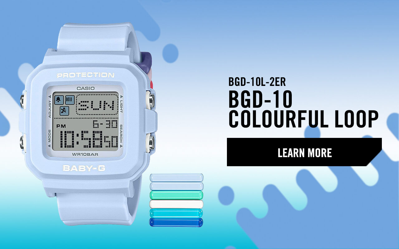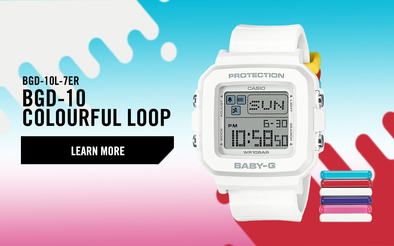 | | MIX. MATCH. CUSTOMISE. | | Express your style with the new BABY-G+PLUS BGD-10L series—convertible watches with vibrant, interchangeable band loops to mix and match your look. | | | |