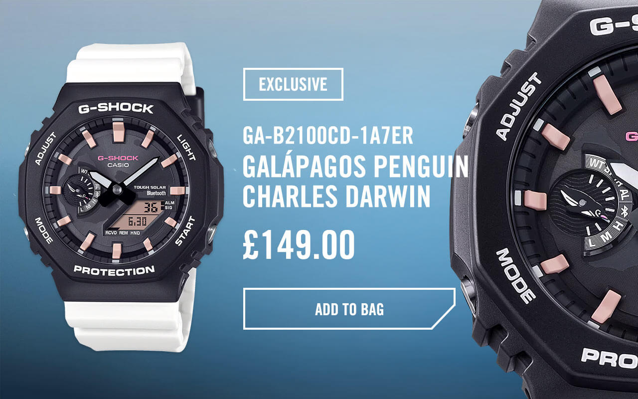 | | CHARLES DARWIN FOUNDATION x G-SHOCK | | Meet the GA-B2100CD series, a third collaboration between G-SHOCK and the Charles Darwin Foundation, supporting Galápagos conservation. The collection features two unique watches inspired by the marine iguana and Galápagos penguin. | | | |