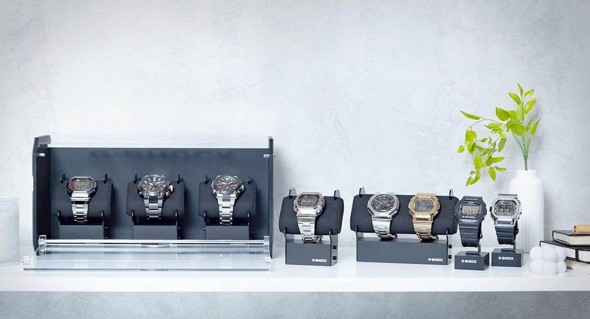 | | | BACK IN STOCK - LIMITED STOCK G-SHOCK WATCH STANDS | | Back by popular demand. Display your collection with an official G-SHOCK watch stand—the perfect way to highlight your favourite timepieces. |  |  |