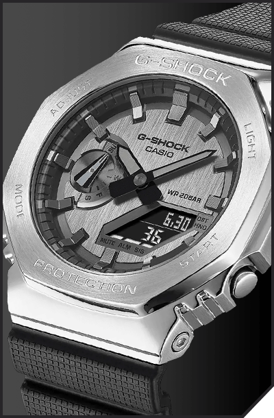 | THE OCTAGONAL POWERHOUSE | | The 2100 series is our most compact G-SHOCK yet, while still packing all the toughness you'd expect. Turn heads and take on any terrain with its shock resistant build and water-resistance of up to 200 meters. | | |