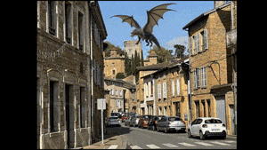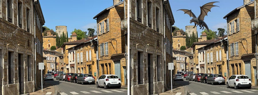 Recommended read/watch. Their total cost would have been a few thousand dollars, if they hadn’t been comped some time by the involved companies. Alright, onto a tiny bakeoff with the new Kling 2.1 and Veo 3 and the above town image. Prompt: “The dragon flaps its wings in lazy cycles. It breathes fire, blasting the town street, before settling to a landing in the road and walking towards the camera. The camera zooms in on the dragon face.” Excellent prompt adherence shown above from Kling 2.1 Pro, not even Master, via Fal. No reroll. It cost me $0.45? Wow. Google Veo 3 was a little less tight on prompt adherence: the street isn’t being blasted, that building is. It did a good roar though :) which obvi can’t be heard in a gif. For some more comparisons, there’s a post on X. They are a bit head to head? Odyssey’s weird, trippy, interactive video demo is up now. Did it put a homeless person on the left there? Others to check out: