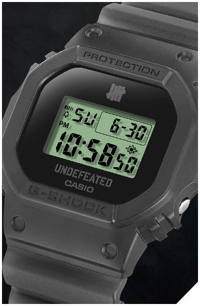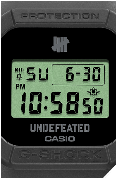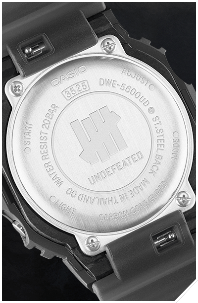| | Limited Edition | Two icons, built to last. The DWE-5600UD-1ER fuses G-SHOCK's legendary toughness with UNDEFEATED's streetwear legacy. Featuring a boxset with interchangeable camo straps, this customisable statement piece is a must-have for your collection - while stocks last. | | | |