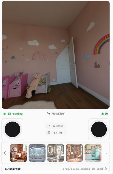 AI Creative ToolsVideoVeo updated to 3.1 and added new tools to their Flow UI, including first and last frames, “insert” by text to edit, and extending in a “project.” It’s still a bit iffy to work with (I find the UI confusing), but you can do stuff like I did here with a pub scene transforming between 2 images (it wasn’t perfect at it, there’s a jump cut), adding a dog with a text insert edit, and then extending to get the dog to leave and snow to fall (some weird furniture stuff). The two images, first of all (made in Midjourney): Veo 3.1: LongCat Video - you can try here with a Pro subscription to Hugging Face - I was pleasantly surprised although it added a lot of people with pints in the end: Hailuo 2.3 is getting great reviews, behind only Sora and Veo 3.1 in the video gen leaderboards. (Replicate link.) These people are furniture challenged, just like the Veo dog, though: Odyssey 2. Another real-time streaming video thing. Modify the world as you watch it. It gets weird fast, and isn’t super consistent. Clear lack of world knowledge and item integration issues… I started with “a Greek island” and then tried to modify the boats and add dolphins. LTX-Fast video gen, on Replicate. Used in the cursed CursedSit.com experiment which is basically slop Friends scenes, which is awful and I love it if briefly. Also, see the scary version which is creepier and has more exploding things. There is code. (Note, also out now, Krea’s open sourced real-time video.) Cool research model - HoloCine: Holistic Generation of Cinematic Multi-Shot Long Video Narratives. I don’t know if they should lean in so hard on “recreate iconic scenes from classic films, demonstrating understanding of cinematic heritage and style.” But ok. “A text-to-video model that generates full scenes, not just isolated clips. … It maintains consistency of characters, objects, and style across all shots in a scene. … You provide shot-by-shot text prompts, giving you directorial control over the final video.” 3D MiscMore WorldLabs! RTFM: A Real-Time Frame Model: a streaming still image 3d panorama thingy that remains consistent even when you “turn around.” You can try demos of some scenes. Tbh, whenever I go try it, I am hung up by this really creepy door in the corner of this child’s playroom, and yes, it’s always there. There is a main door as well. Very Uketsu Strange Houses. In their tool, those big black buttons are controllers for zoom and pan etc: Generating Infinite 3D World: Speaking of strange houses… This thing is a research project that generates totally cursed apartment layouts, that are indeed infinite-ish. As a fan of weird architecture, I can’t wait to play with these. The repo is in progress, but I have hopes: Crystal Words - text in shiny crystal will fall with good physics, a demo. RadianceFields made a creepy Halloween pumpkin hunt inside a giant splat of a McMansion. Speaking of, The Impact and Outlook of 3D Gaussian Splatting is an overview that might interest some… Hunyuan World Mirror — an app that will take a video (or images) and construct a 3d gaussian splat, mesh, 3d point cloud mesh, depth maps etc from it. I tried with a Veo 3 video of the interior of one of my cozy pubs, and it was — ok? Not as good as World Labs splats, but still pretty amazing from a video generation clip. This is a workflow people have been suggesting for months now; generate a video clip, and then turn it into a 3d mesh. Related, there is FlashWorld Spark — which takes an image and some camera directions, and generates a splat/ply for it. It’s a bit confusing, since the generated splat makes almost no sense to me… but when I discovered their “scrub” Trajectory Playback (step 5 on the right) for the camera controls, it made more sense. Skyfall-GS: Synthesizing Immersive 3D Urban Scenes from Satellite Imagery: “Skyfall-GS converts satellite images to explorable 3D urban scenes using diffusion models, with real-time rendering performance.” This is one of those “Google Earth with buildings as splats” but actually we already know that there ARE splat interiors that are navigable in some Google streetview content, at least if you look in Android’s Maps, so huh. A few misc 3d items: