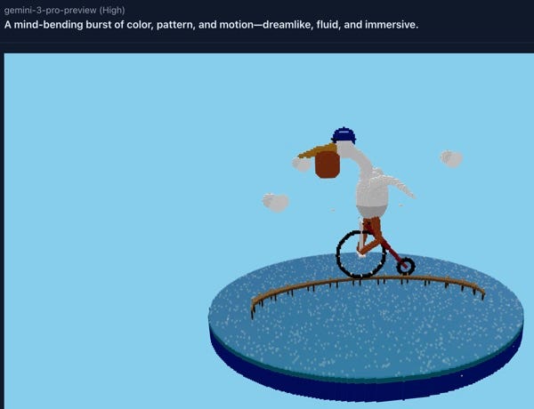 The latest news and links. The usual fun 3d links, web projects, games links, some narrative generation papers and articles, some stuff on SVG generation which is getting much better by LLMs! If you find it useful, help support my time and business taxes with a subscription! TITAA #76: The Seen and the UnseenSVG Generation - Gemini 3.1 Pro - Beyond Slop - Art Maps - Agentic Patterns - Read in VRLook, it’s pretty hard chez moi when we have great weather on a weekend and I have a newsletter deadline. This is a bit rushed, because I chose to go out with my ebike and my drone instead of sitting inside all day. But I can’t let this slide to tomorrow (like the media recs, which will slide). TOC: